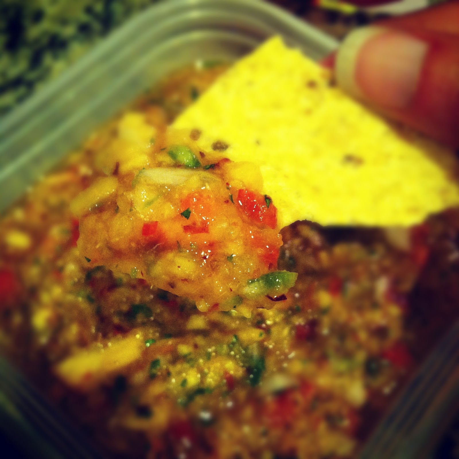 | Peach salsa = GLORY. We bought some peaches coming home from the beach that are FAB. So Liz passed along a peach salsa recipe that is pretty amazing. AND I had all the ingredients in my fridge. Except for the mint that came from my yard. Praise God for another herb that requires me to do nothing. |